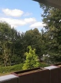Die Balkone liegen zur Rückseite und mit Blick auf den angrenzenden Friedhof.
